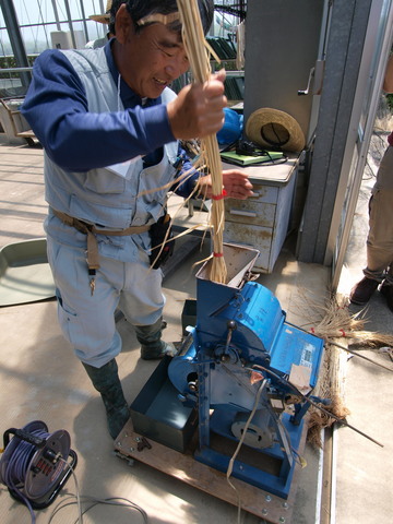 画像中:ひと株づつ種籾を採取するための機械 宮田さん