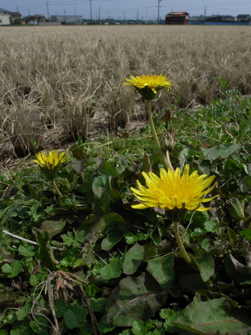 画像下:畦草のタンポポ。あさひの夢ほ場にて。