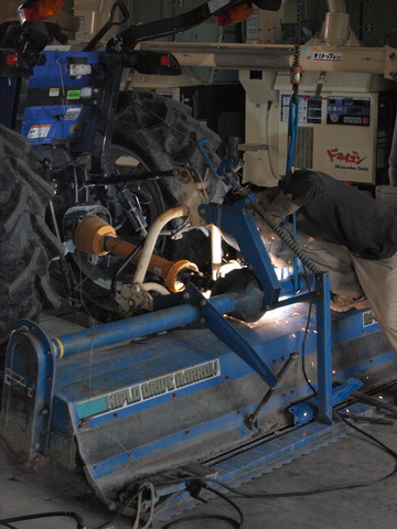 作業場へ行くと、無惨にも溶接面が金属疲労でボッキリ折れたドライブハロー。すでに修理が始まっていた。