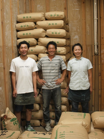 画像下:9月9日、今年も40俵(2400キロ)無事入荷。16段積み終えたら恒例の記念撮影。中央の松下さんとアンコメスタッフ。