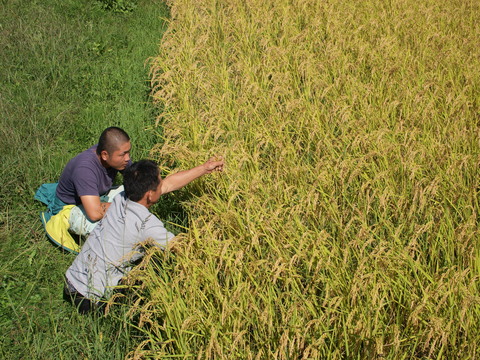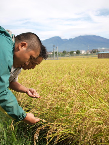 画像下:穂の根元部分の米の状態がいい。松下に言わせると、満点とは言い難いが、まずまずの出来とのこと。