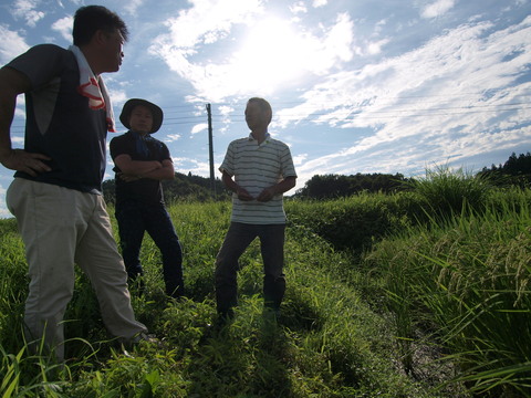 高温や冷夏、日照不足に空梅雨、台風に大雨・・・毎年毎年に列島中でいろいろなことが起きているが、僕の知る限りこの大子町は大きな影響を受けることがあまりなかったように思う。「人が古くから住みついているところはそれなりの理由があるんだって考古の先生が言ってぜ・・・」と、いつも行く味一(大子町ダウンタウンにある焼肉&おむすびの人気店)で一杯やりながら松下が言った。「田んぼだってそうだろ、放棄された田んぼには理由があるんだ、いい田んぼはみんな知ってんだよ・・・」。就農して5年、最近になってようやくいい田んぼが借りられるようになった黒田くんにとっては、それは目の前の現実そのものだと松下さんも大久保さんも承知の上で話をしている。大切なのは、こうして旅をして別の土地に来て自分の足元を俯瞰すること。栽培技術を学ぶことと同じか、それ以上にこの皮膚感覚は大切なことと思う。これが分かってはじめて、自分の足元でしかできない米を考えることができる。と僕はいつも感じている。農業者でもないのに生意気なのではあるが。