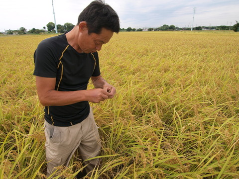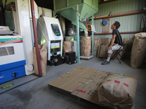 収穫は予定どおり9月5日から段階的に行い、その後乾燥調製を経て9月10日に籾擦り。この日の午後顔を出すと、ちょうど袋詰めの作業中だった。米検査用のカルトンへ、ひとすくいして品質を見る。完璧だった。もちろん色彩選別機を通していることもあるが、それを引いても見事な出来だった。