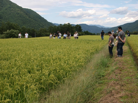 8月31日(土)第23回カミアカリドリーム勉強会@長野伊那を開催しました。当日は好天に恵まれたこともあり20名を超える参加者が集合しWakka agriのthe rice farmを見学しました。Wakka agriでは、すべての圃場で無農薬無肥料栽培(いわゆる自然栽培)を行い、生産されたお米のすべてが輸出されグループ会社が運営する海外の店舗で販売しているという過去に例のない注目の農業法人です。また生産アイテムのひとつである巨大胚芽米カミアカリは北米(ハワイ、ニューヨーク)で販売し現地で好評を博しています。そんなWakka agri、じつは稲作を始めて3シーズン目というから驚きです。今回はその取り組みと令和元年産のカミアカリの生育状況などについて現地でたっぷりとお話しを聞きました。