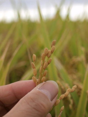 画像上:右手がもうすぐ収穫の「きぬむすめ」と、左手が10月中旬収穫の「にこまる」どちらも順調です。