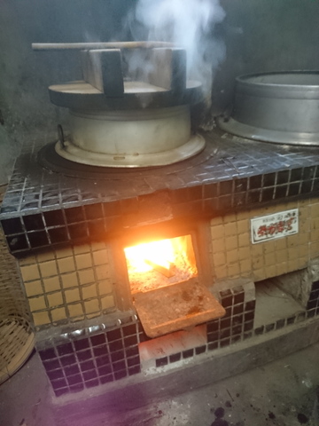 偶然同じ島田市で古い民家を別荘のようにして利用している知人から、釜戸でご飯炊きを指南してほしいと依頼され個人レッスンに行ってきた。現場は静岡県島田市身成、いわゆる川根茶と称される茶産地に位置した茶畑に囲まれた集落にその民家はった。その家の厨房にはタイル化粧張りモルタル造二口の釜戸があった。それは旧家でよく見るような特注の大規模なものでなく、昔はよく萬屋(今でいうホームセンター的な品揃えの店)の店頭で売っていたような量産品で昭和の時代には時々見かけたものだった。釜戸の横には、知人がどこかの古道具屋で手に入れたらしい羽釜がぽつりと置かれていて我流で何度か挑戦したらしいことが釜底の焦げ跡から察せられた。
