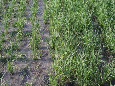 藤枝と焼津へ配達へ出向いた際、少し足を延ばし松下さんの田んぼへ。電話をすると「〇〇横で草取りしてる~」とのこと。急行するとヒエだらけの田んぼの中でスタッフKくん二人、中腰で草取りをしているではないか!何年ぶりかで見る光景に少し驚き、何かあったんだろうことを察した。これだけ草にやられたのは、いつぶりだろうかと考えていると、すっかり日焼けした松下さんがニヤニヤしながらこう言った。