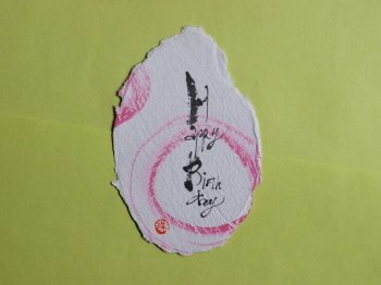 画像下:Happy Birthday を筆で描きました。