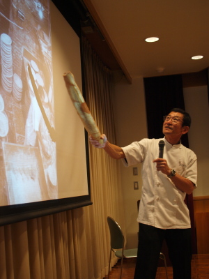 画像上:17日、前日のテストベイキングでバゲットを作る仁瓶さん。(ドンク松坂屋静岡店にて)