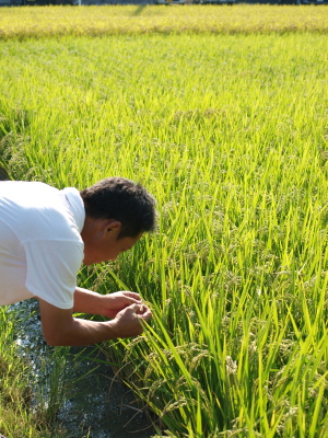 彼は今まさにシエステの最中だった。日陰に移動して冷えた緑茶で喉を潤しながら、稲の生長状況や、この間のカミアカリツーリズムのこと、他の生産家の米の出来具合など、いつものように話しに興じた。