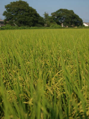 いつものコースで周辺に散らばっている田圃へ車で移動しながら見て回る。カミアカリ、ヒノヒカリ、あさひの夢、いただき・・・。どの圃場の稲も、一見して姿がいい。田植え時期の低温の影響か、分けつが増えなかったせいもあり、スカッとして見える。というわけで収量は、昨年に続き少ないと見た。たぶん反収は6俵台前半は間違いなさそうだ。