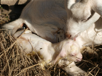 画像下:偶然ヤギの出産を見た。