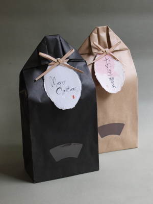 クラフト紙でできたパッケージ(2キロ入り)に、お好みのお米を入れます。
