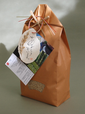 アンコメデザイニング 2011年1月22日 先日作った稲穂のタグの祝い米。こんな姿で完成しました。 テーマは、寄り添う案山子の夫婦が稲を眺めている。です。 今回はお客様からこのテーマをいただきイメージをふくらませました。 アンコメではいつもこんなカタチで新しいアイデアを生み出しています。 云わば、お客様と一緒にデザインニングしているわけですね。 アンコメのお米、 アンコメ米バッグ エコ米タグ これら3つの要素から 無限にバリエーションが生まれています。 アンコメの祝い米、今日も新しいアイデアでカスタムメイドしています。