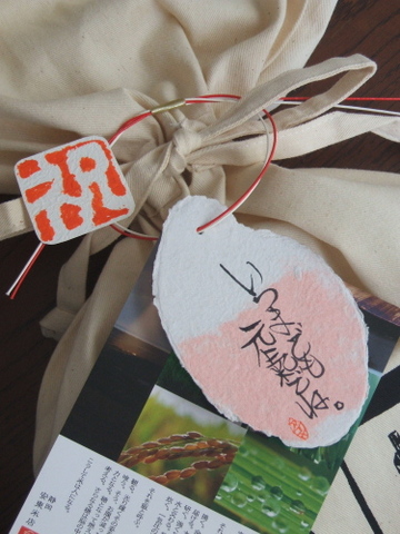 敬老の日、祝い米。 2011年9月12日 アンコメの祝い米は一年中さまざまにご利用いただいてます。 9月に入るとこんなご注文が増えてきましたよ。 敬老の日。 そこでこんなメッセージを描きました。 いつまでも元氣でね。 裏面にはお孫さんのお名前を書き添えました。 今回は【特別栽培米】静岡森町堀内米コシヒカリ(新米23年産)でお作りしました。 3キロと祝い米パッケージA(箱なし)で合計2180円です。