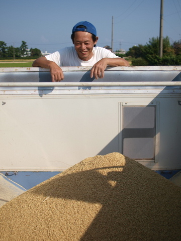 松下はちょうど酒米品種の稲刈りをしている真っ最中だった。