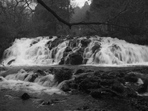 画像中:柿島さんが「ニジオの滝」と呼んでいた。 柿島養鱒場内