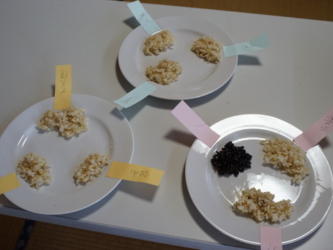 「かりんとうの照り」「さなぎ」「ぷっくりお相撲さん」「イカ墨リゾット」「荒々しさ」など、9種の中で圧倒的なインパクトのあった黒巨大胚芽米には容易に言葉が出たが、それ以外にはなかなか表現が難しかった。ここでは色表現の必要性を今後の課題となった。