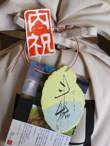 イメージが固まったら選んだエコ米タグに描きこむ。