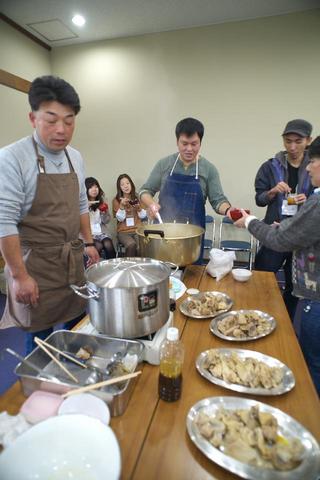 伊澤さんにも人数分以上にたっぷりとご用意いただきました。当日は昼前には雨が降り始め寒い一日となりました。その寒さにカミアカリの軍鶏スープ煮は、体の芯から温まる一品でした。