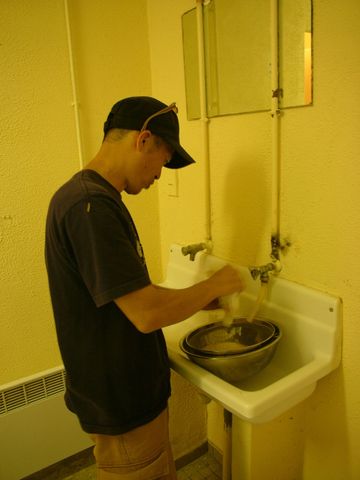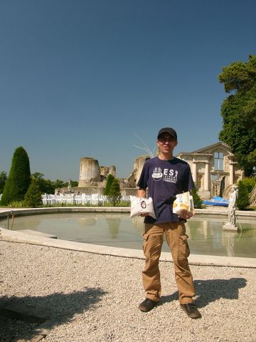 と、お願いしたかしないかのうちにシャトーの厨房へ駆け出していった。戻ってきたら18時までに返す約束で借りてきたよ。渡されたのが銀のワインクーラー×2 さっすがシャンパーニュ!洗米を再開し玄米2キロと白米2キロをその2種を水を張ったワインクーラーへ無事収めた。