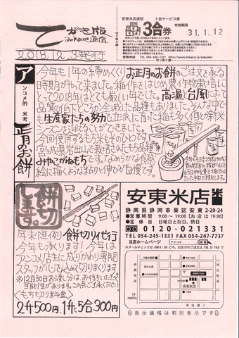 今年も1年の締めくくりお正月のお餅のご注文を承る時期がやって来ました。稲作をはじめ農作…