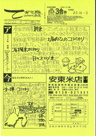 新米入荷シーズンは何かと忙しく休みなしで動き回っています。このチラシやホームページが更…