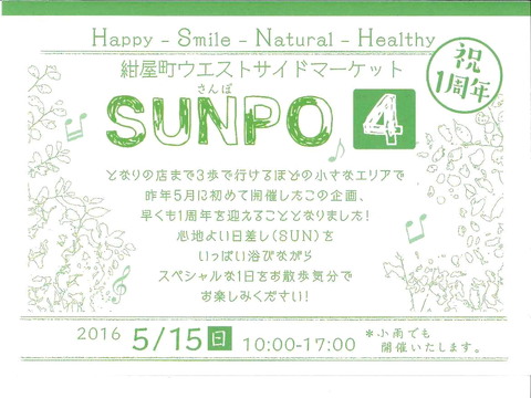 5月15日(日) 紺屋町ウエストサイドマーケット SUNPO Vol.4 アンコメも参…