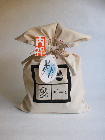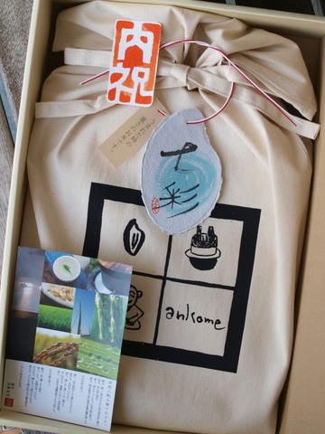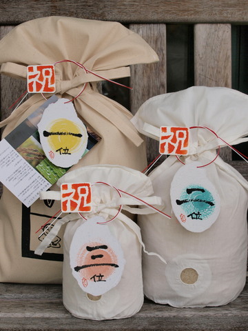 コットン袋で作るアンコメの祝い米、おかげさまでアンコメのお米ギフトのロングセラーとなっ…