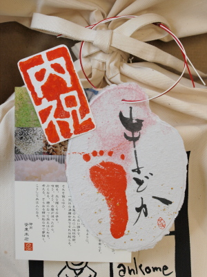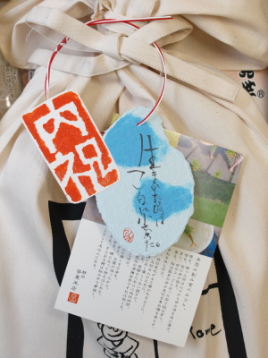 前回ご報告した足型を押したちょっと大きめのメッセージタグ(通称:エコ米タグ)を使ったアンコメの祝い米…