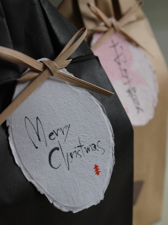 アンコメの祝い米にはお米の形をしたタグをお付けします。 再生紙で手作りしているので通称…