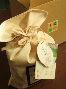 店を開けて間もなく、知人で大学の先生のされているHさん来訪。これから伊豆へ行く手土産で、静岡のお米を…