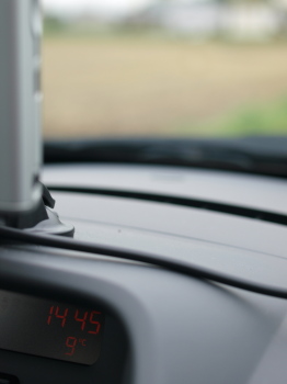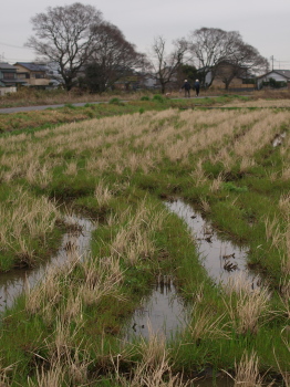 藤枝の田圃に到着。寒い。これじゃ、まるで冬。 故障の絶えないオンボロ仏車でも、この外気温計だけは、な…