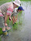 満を持して企画に取り組んだ2003年の松下×安米プロジェクトの大イベント「稲刈り体験会」。なんと田…
